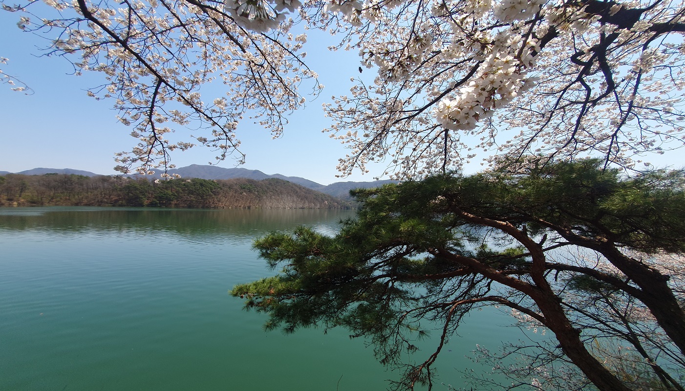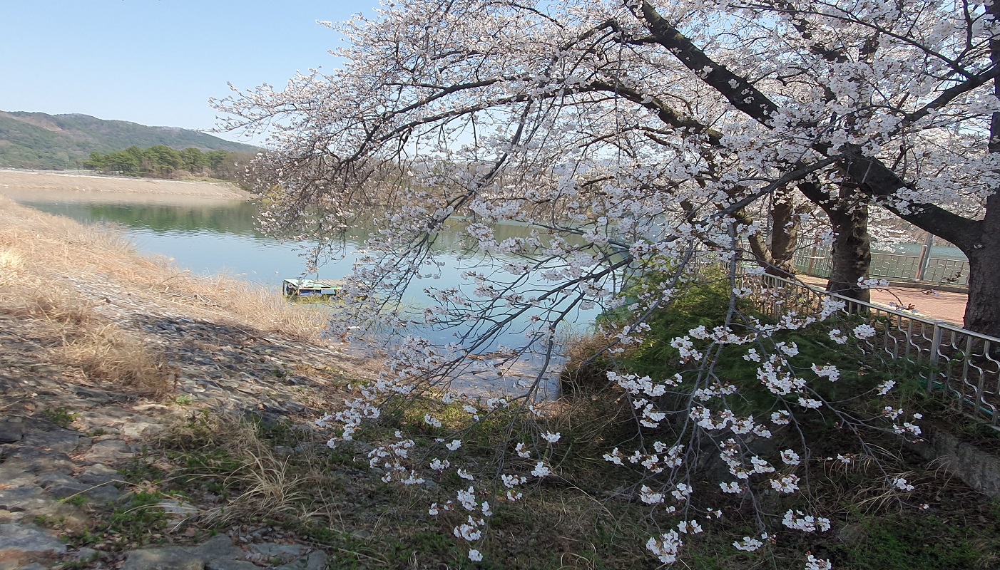 겨울엔 눈꽃송이가 내리지만, 지금 구이저수지는 벚꽃송이가 포근하게 흩날리고 있습니다.