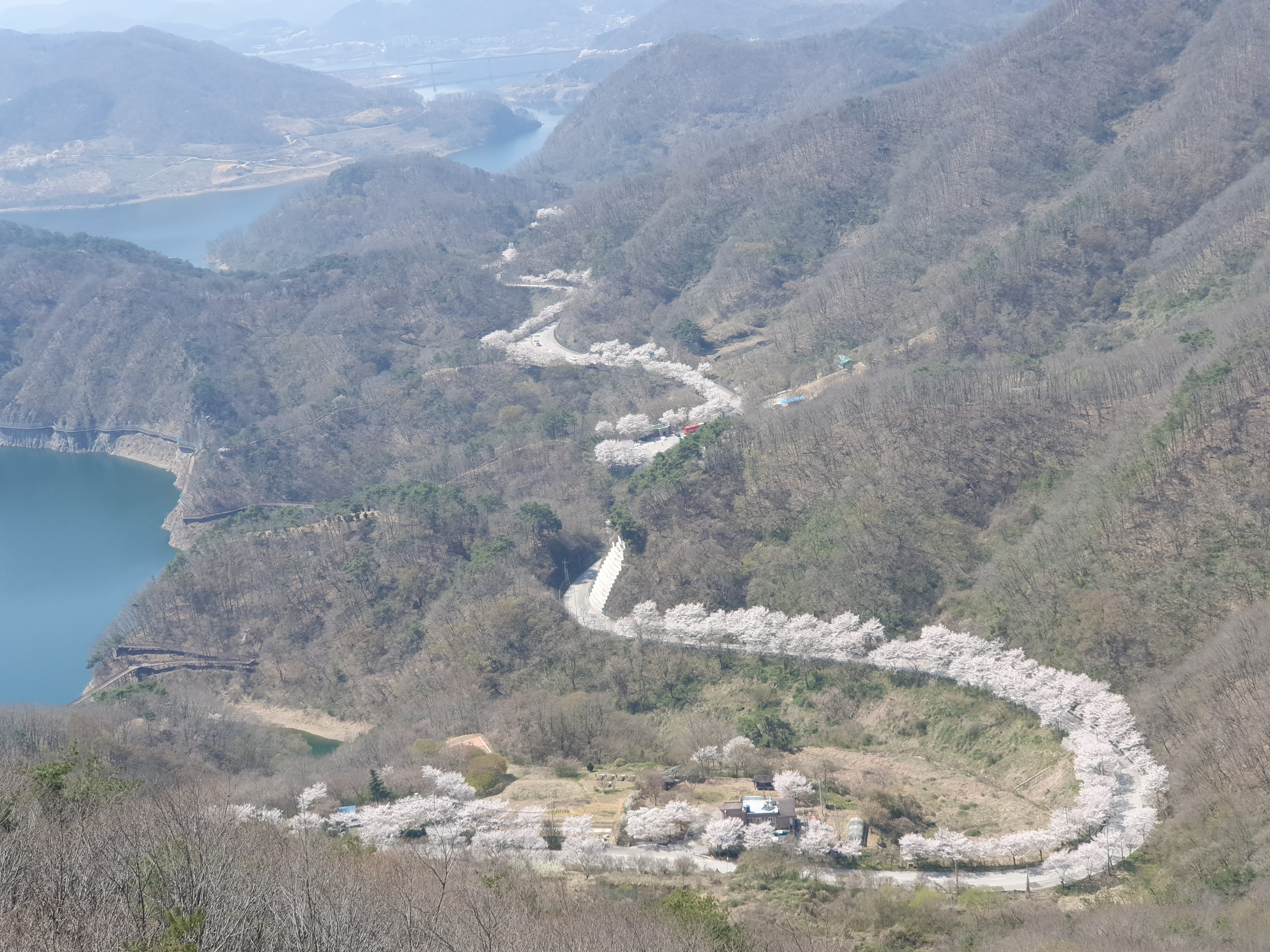 벚꽃이 만개한 드라이브 코스도 한눈에 내려다보이니, 말 그대로 자연이 만들어낸 예술 작품입니다.
