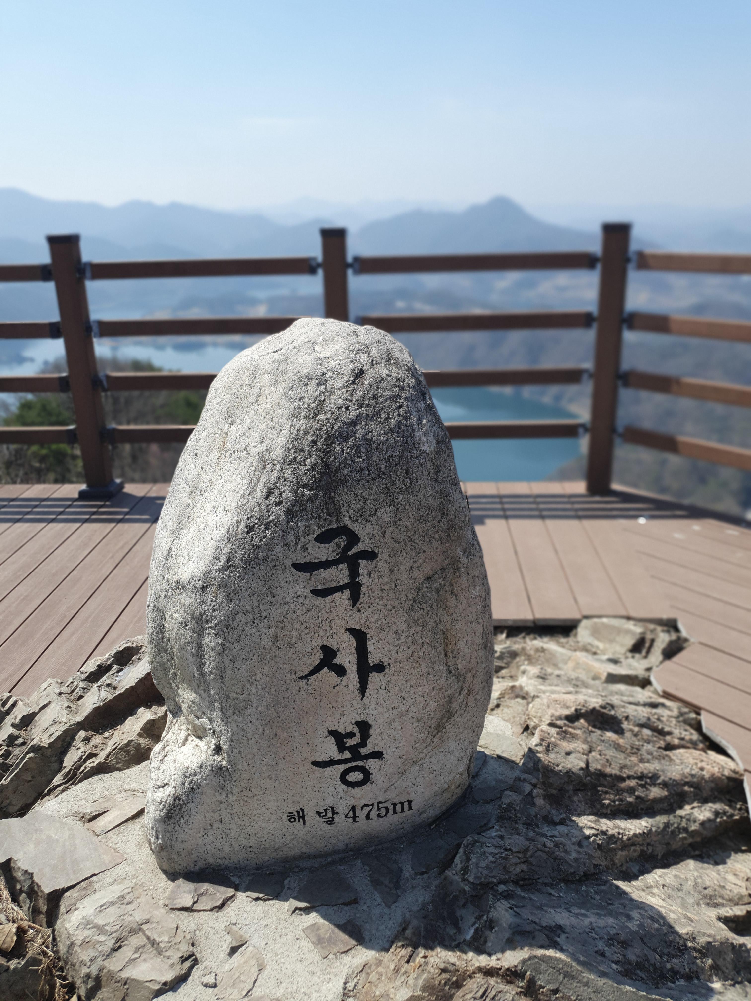 국사봉은 해발 475미터 높이의 산으로, 천천히 오르면 약 30~40분이면 정상에 도착합니다. 중간에 가파른 구간도 있지만, 계단과 난간, 잘 관리되고 있고 오르다 보면 높이마다 포토존이 마련되어 있어 다양한 높이에서 붕어섬을 감상할 수 있습니다, 위치에 따라 붕어섬의 모습이 조금씩 달라지는 게 정말 매력적입니다.