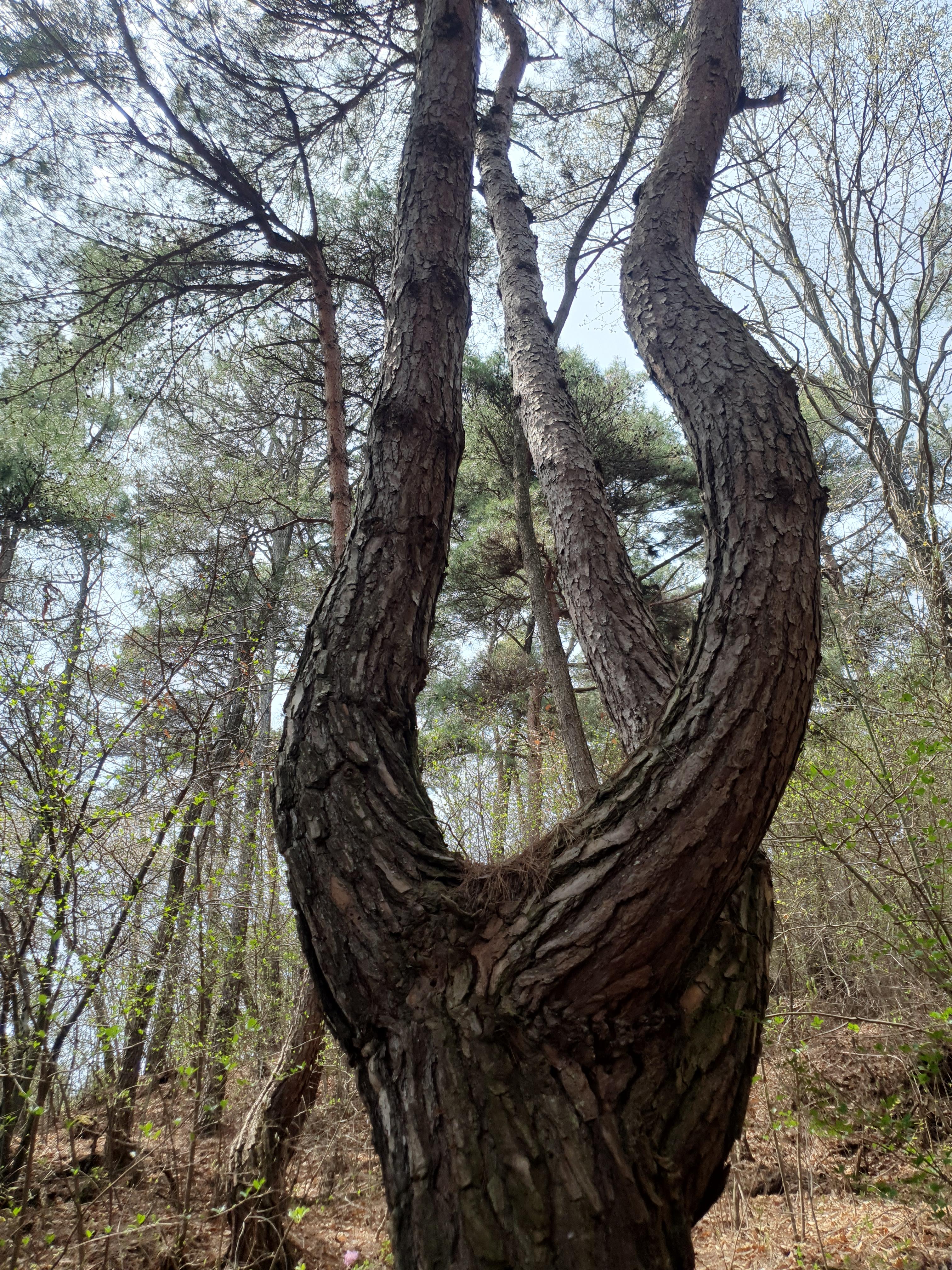 걷다보면 산길 끝자락에 하얗게 거미줄 처럼 덮인 소나무가 있어요. 혹시 병이든 나무일까 걱정이되어 알아봤는데, 송진으로 인해서 그렇다고 괜찮다고 하네요. 놀라지 마세요~~