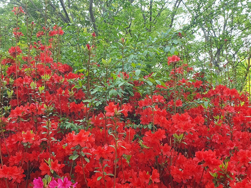 공원 주변에 다양한 색으로 봄의 절정을 알리고 있는 철쭉꽃