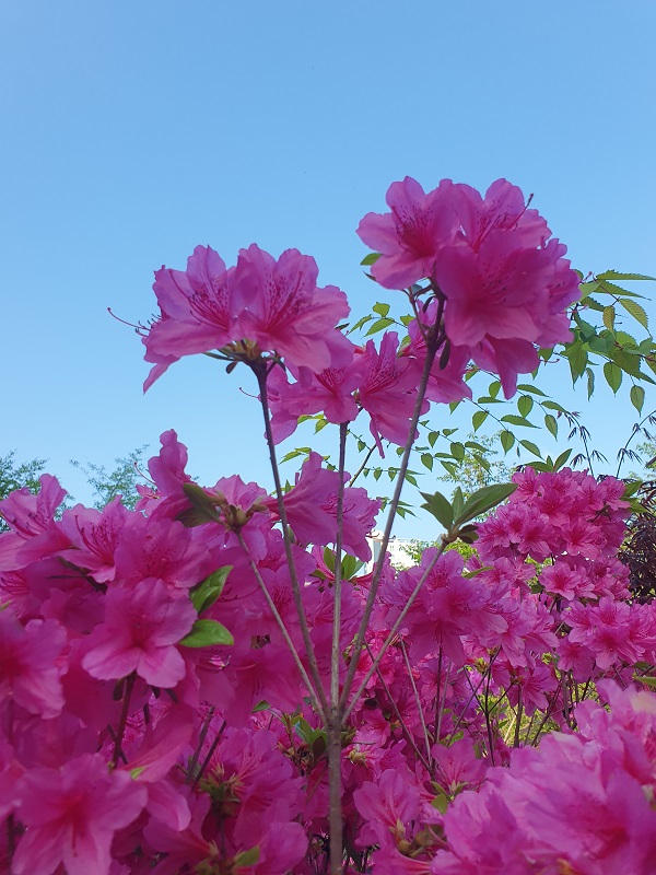 공원 주변 산책로를 따라 천천히 걷다 보니 연분홍색, 분홍색, 진분홍, 그리고 흰색까지 다양한 색깔의 철쭉이 활짝 피어 있어 눈길을 사로잡습니다. 꽃들이 마치 서로를 의식한 듯 한창 아름다움을 뽐내고 있어 그 풍경만으로도 마음이 절로 환해집니다. 살랑이는 봄바람에 꽃잎이 흔들리고, 그 사이로 걸음을 옮기다 보면 문득 일상 속에서 잊고 지냈던 여유와 평온함이 마음속 깊이 스며드는 듯한 기분이 듭니다. 잠시나마 시간의 흐름이 느려지는 듯한 이 산책길에서, 자연이 주는 위로와 휴식을 고스란히 느낄 수 있어 참 고맙고 소중하게 느껴집니다.