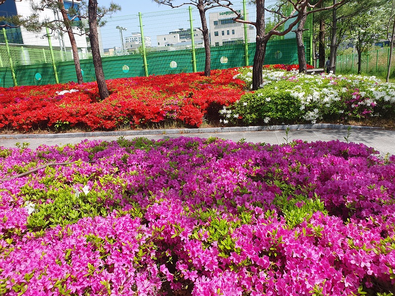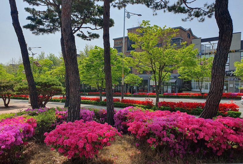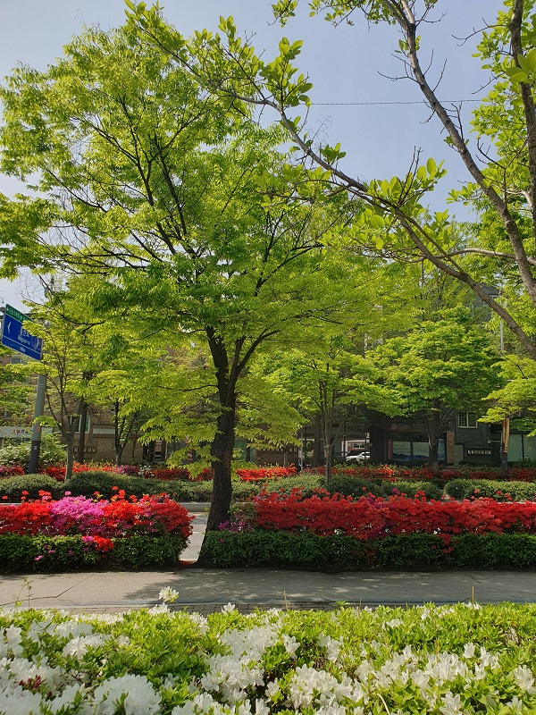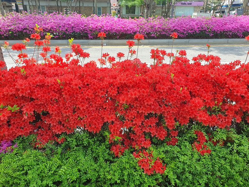 며칠 전 업무차 우체국을 갈 일이 있었습니다. 꽃들이 흐드러지게 피어있는 길을 걸어보고 싶어 천천히 걸어갔습니다. 가는 길에 울긋불긋 피어 있는 철쭉꽃들이 마치 자기들을 보고 가라는 듯이 손짓하는 것 같았습니다. 그 마음에 이끌려 사진을 찍고 싶었으나 꾹 참고, 얼른 볼일 만 보고 나오자고 다짐하며 발걸음을 재촉했습니다.