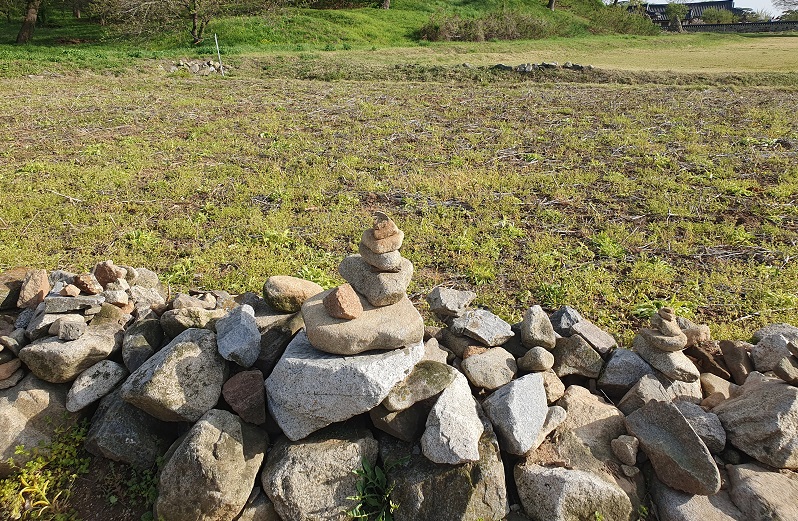 하늘을 향해 멋있게 뻗은 멋진 소나무 산책길을 따라걸었다. 군데군데 꽃들도 보였고 또 누군가가 소망을 담아 쌓아 올린 작은 돌탑들도 볼 수가 있었다. 정겨웠다. 성곽길을 걸을 수 있을 거라 생각했는데, 보존을 위해서 개방하지 않고 있었다. 조금 아쉬웠다.