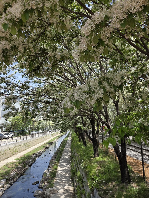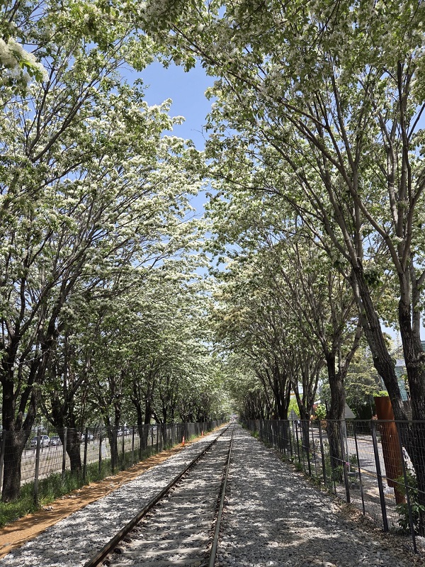 철길 옆으로 이팝나무가 길게 늘어서 있다는 이야기를 듣고 하얀 꽃이 흐드러지게 핀 풍경을 기대하며 길을 나섰다.