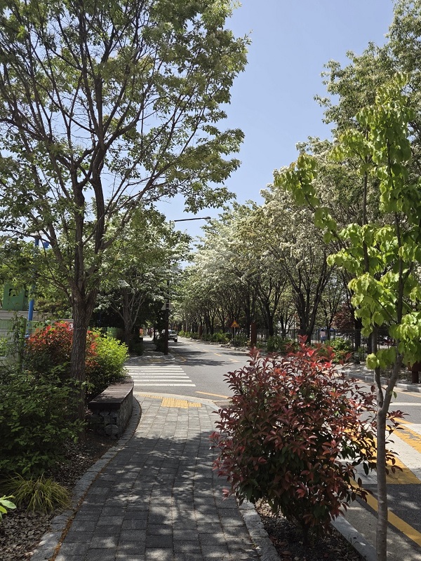 어떤 나무는 꽃이 져 갈색으로 물들고 있었고, 또 어떤 나무는 새하얗게 피어오르고 있었다. 만개한 풍경을 보지는 못했지만, 피고 지는 모습이 어우러진 지금 이 모습도 참 아름다웠다.