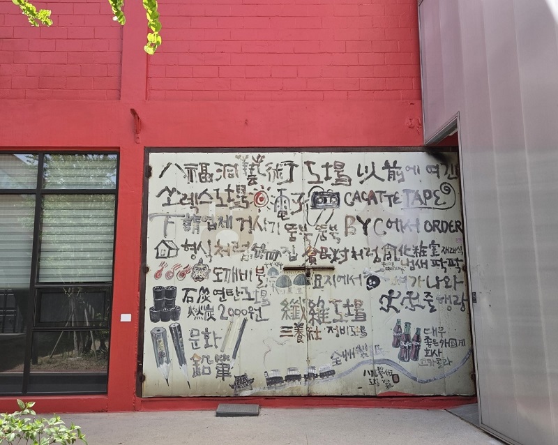 처음 눈에 들어온 것은 한문과 한글, 그림이 섞인 벽화였다. 무슨 뜻인지 정확히는 모르겠지만 이곳에 있으니 작품이겠지 하며 자세히 보니 쏘렉스란 단어가 보였다. 공장 이름이었다. 이 공장에 대한 이야기인 듯 하였다.