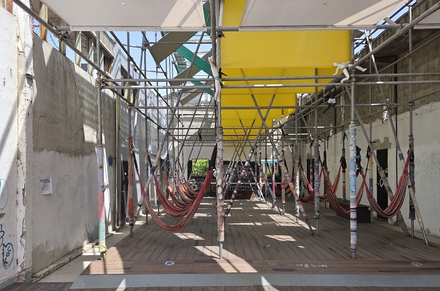 공장의 허물어진 벽, 벽을 타고 자라는 담쟁이 넝쿨, 하늘을 가린 낡은 천막, 이 모든 것이 서로 어우러져 하나의 거대한 설치미술처럼 보였다. ‘예술공장’이라는 이름이 정말 잘 어울리는 공간이었다.