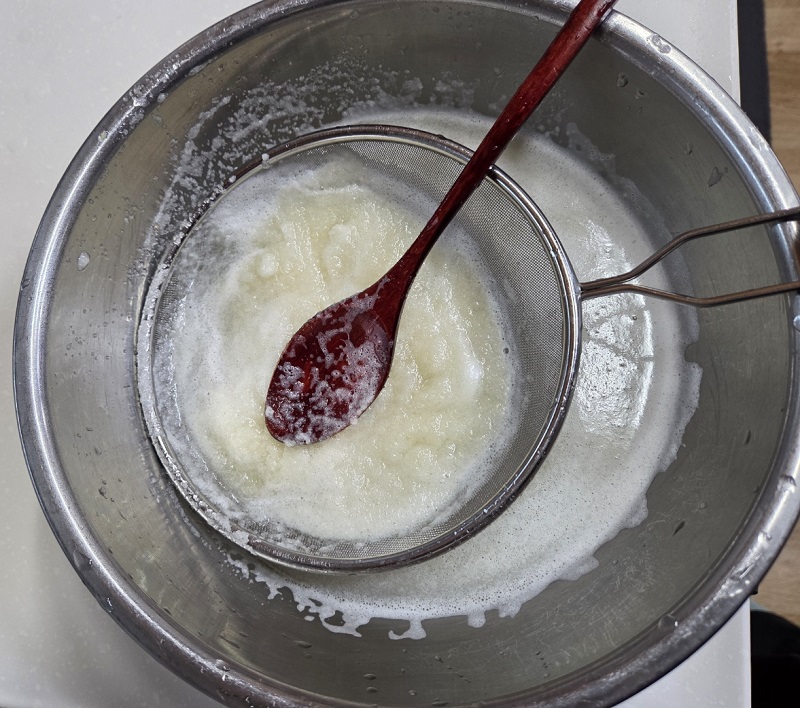 육수도 우러나서 식도록 내려놓고 이제는 풀을 끓일 차례이다. 밥을 갈아서 해도 되지만 쌀가루가 있어 육수를 넣어서 풀을 쑤어 식혔다.