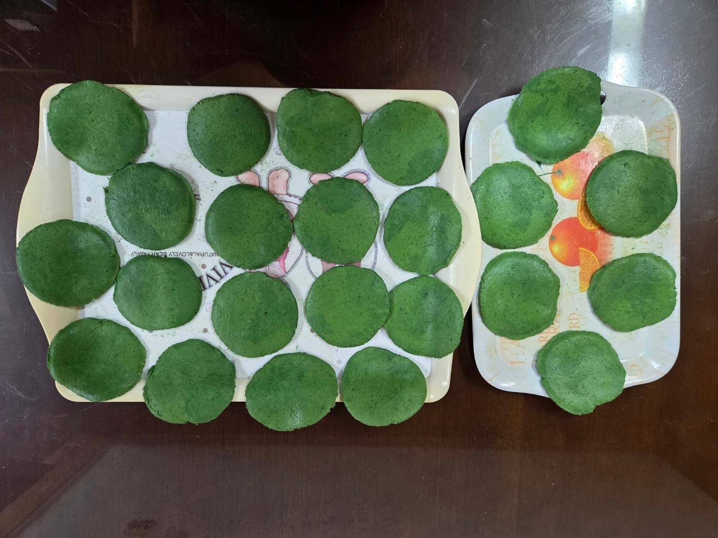 먼저 큰 덩어리 반죽을 넓적하게 만든 다음 칼을 이용하여 한 번 먹을 적당한 크기로 자른 뒤 동그랗게 만들어 놓는다. 그런 다음 동그란 반죽을 하나씩 랩으로 싼 접시 위에 올려놓은 후 밥그릇 아랫부분으로 살짝 눌러 주면 적당한 크기의 둥글고 예쁜 모양의 쑥개떡이 완성된다.