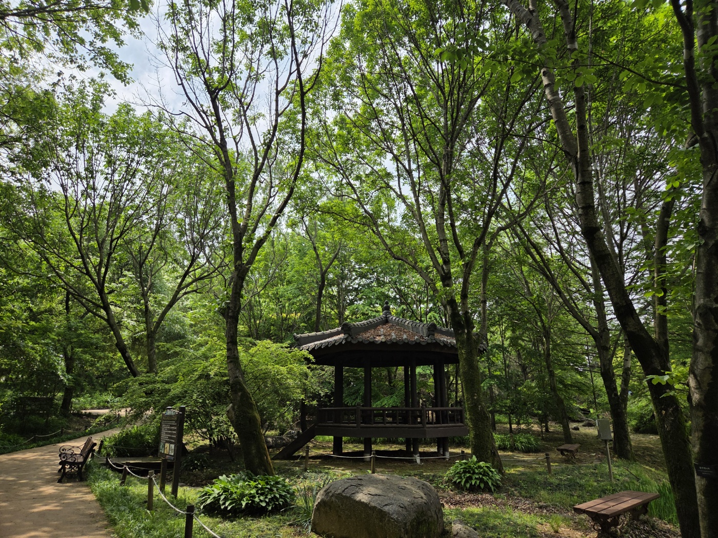 오늘은 전주 수목원에 다녀왔다. 정오 무렵 도착했는데, 주차장이 여유로워 마음이 편했다. 친구가 아닌, 가장 가까운 사람과 함께여서였을까. 유난히 더 아름답게 느껴졌다. 입구에 들어서는 순간, 마치 깊은 산 속에 온 듯 큰 나무들이 반겼다.