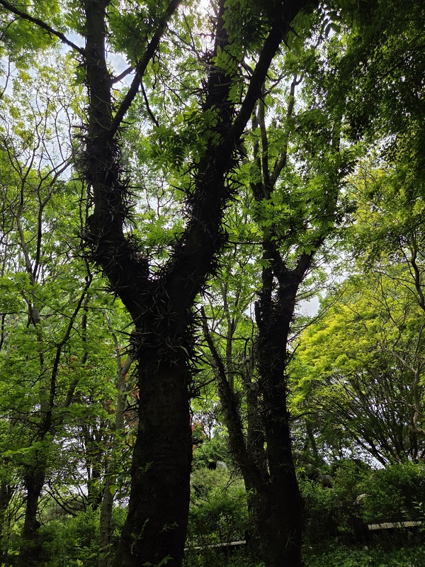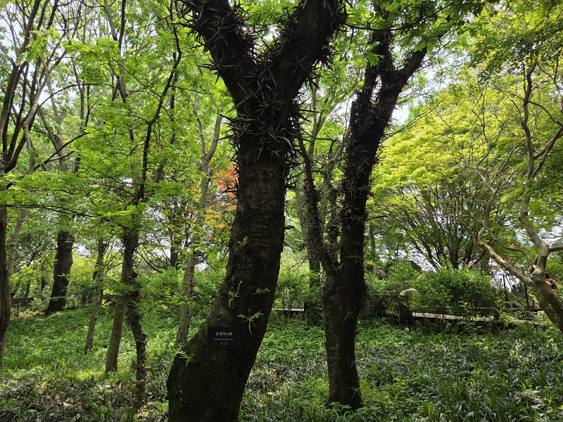 길을 걷다 잠시 발걸음을 멈추게 한 나무가 있었다. 큰 나무에 돋아난 새순은 탱자나무 가시처럼 생겼고, 그 위쪽으로는 선인장도 아닌데 나무에 뾰족한 가시들이 빼곡하게 자라고 있었다. 그 나무 이름은 '조각자나무'이다.