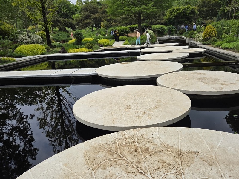 곳곳에 호수가 있었는데 그중 한 곳은 외계인이 만들어 놓은 것 같은 독특한 둥근 다리도 있어 눈길을 끌었다. 다리라는 단어가 어울릴지는 모르겠지만, 참 인상 깊은 구조물이었다.