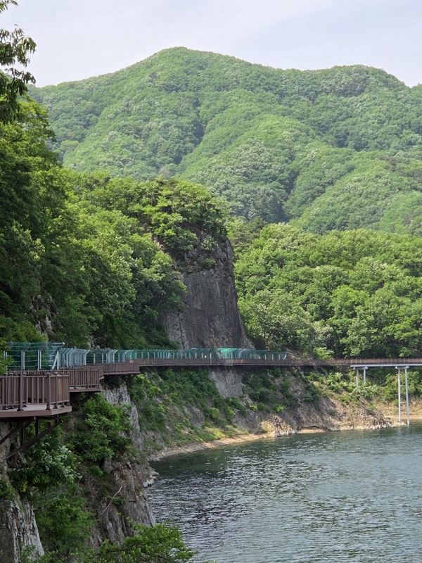 그 산책로를 걷다 보면 맑은 호수 위를 걷는 듯한 기분에 빠져들기도 하고 가끔은 아찔한 절벽 길이 가슴을 내려앉게 하기도 합니다. 하지만 그런 긴장감조차 이 길의 아름다움을 더해주는 요소가 되기도 합니다.