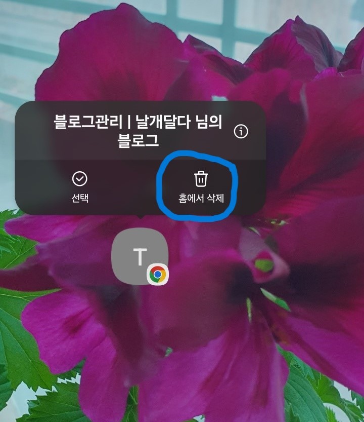 6. 만약 아이콘을 삭제하고 싶다면, 아이콘을 길게 누른 후 ‘홈에서 삭제’를 선택하면 됩니다.