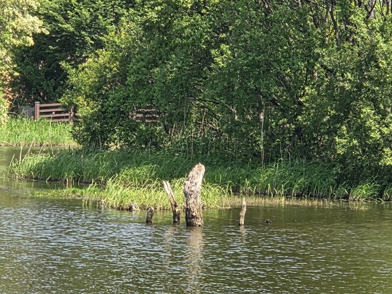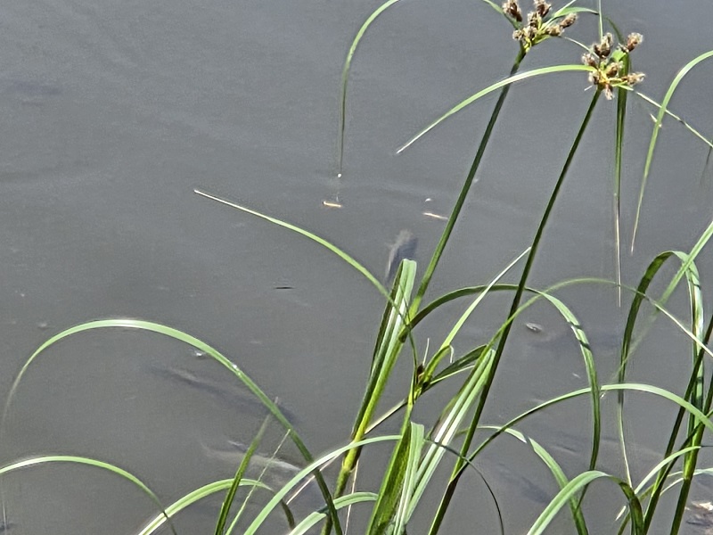 이번엔 넓은 호수 쪽으로 시선을 돌렸습니다. 그곳에는 어린 치어들이 떼를 지어 다니고 있었습니다. 탁해 보이는 물속에서도 다양한 생명들이 숨을 쉬며 살아가고 있었습니다. 아마도 멀리 섬처럼 보이는 저 풀숲이 그들의 안전한 보금자리가 아닐까 하는 생각이 들었습니다.