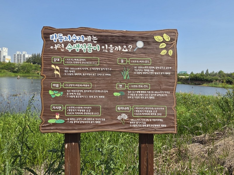 빙등저수지 곳곳에는 이곳을 찾는 새들과 수생식물, 멸종위기 야생생물 2급인 독미나리, 가시연의 서식처 등에 대해 잘 설명된 표지판이 설치되어 있었습니다. 그냥 연꽃이 생각나서 들른 이곳이 이렇게 중요한 곳이라는 것을 알게 되니 모두가 특별하게 보였습니다. 특히 이곳은 독미나리처럼 보존 측면에서 매우 가치가 높은, 보호가 필요한 동식물들이 안전하게 살아갈 수 있는 환경이 잘 갖춰진 곳이라는 인상을 받았다.