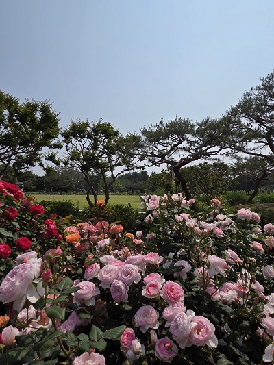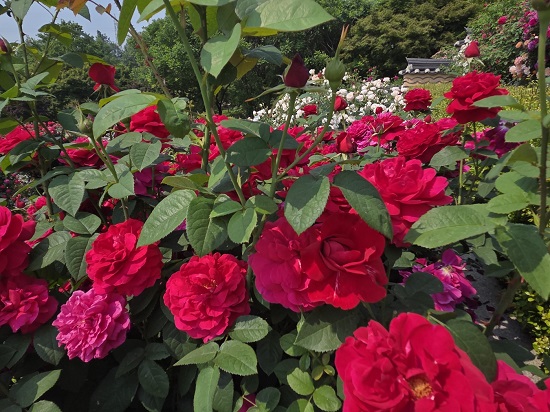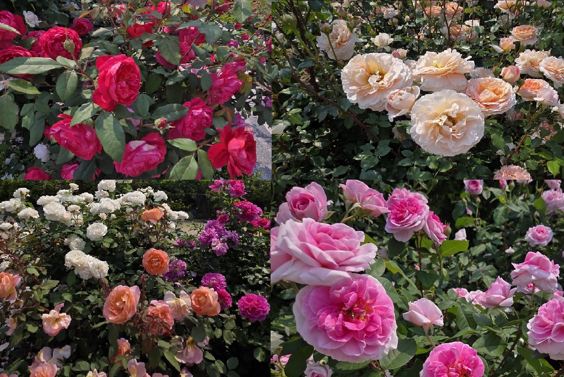 지난번과는 다른 길로 들어섰는데 장미의 뜨락이 생각보다 가까이에 있었다. 장미의 정원에 들어서자마자 눈앞에 펼쳐진 건 활짝 핀 장미들로 가득한 장미정원이었다. 붉은색, 분홍색, 노란색, 흰색 등 다양한 색감의 장미들이 한껏 피어 있었고 마치 꽃으로 이루어진 세상에 들어선 듯한 기분이었다.