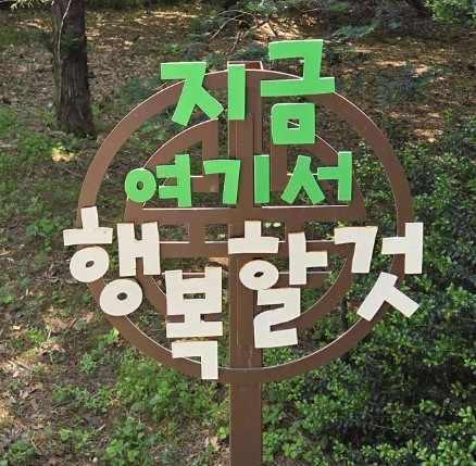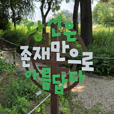 산책길 중간중간에는 따뜻한 말들이 적힌 예쁜 팻말들도 많았다. “니가 웃으면 나도 좋아”, “당신은 존재만으로 아름답다”, “지금 여기서 행복할 것같은 문구들은 지친 마음을 토닥이는 듯한 느낌을 주었고, 발걸음을 멈추고 글귀를 하나하나 읽으며 마음속으로 위로받는 기분이었다. 무심코 지나칠 수 있는 문구였지만, 그날은 이상하게도 모든 문장이 내게 말을 걸어오는 듯했다.