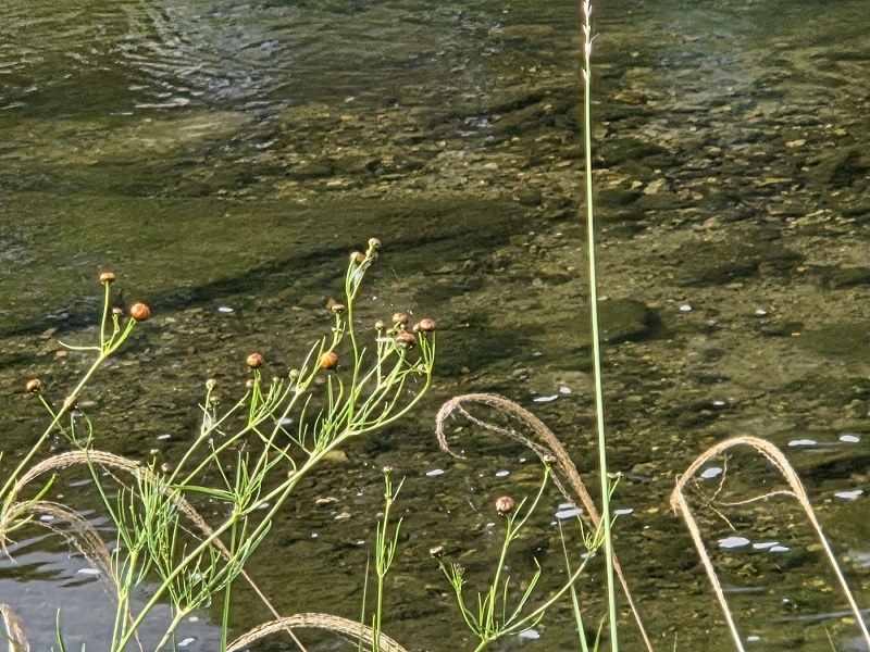 무화과나무를 들고 천천히 걸어 차로 돌아가는 길 천변에는 야생화가 소박하게 피어 있었고, 물속에서는 작은 물고기