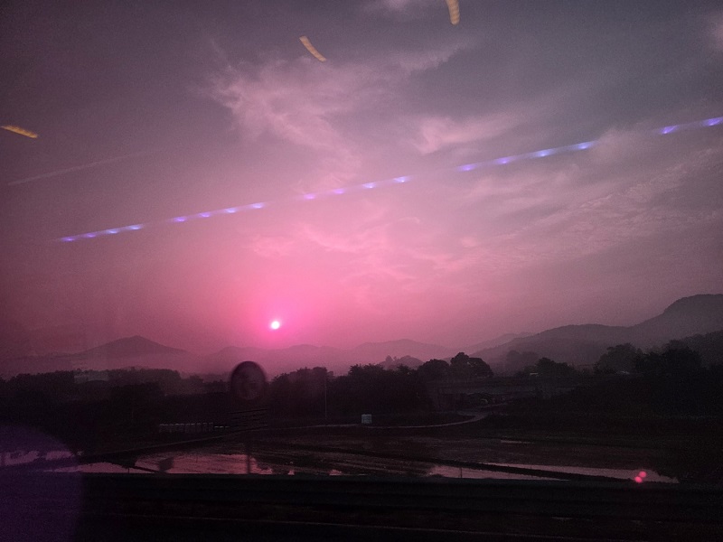 힘들게 기다려 약속 장소에 도착하니 하나둘 사람들이 모여들었다. 생각보다 많은 인원이 모이지는 않았지만, 사정상 못 온 이들은 더 속이 상했을 것 같다는 생각이 들었다. 이렇게 이른 새벽에 움직여보는 건 젊었을 때 이후 처음인 것 같다. 덕분에 하늘에 예쁘게 떠 있는 밝은 해도 오랜만에 구경할 수 있었다.