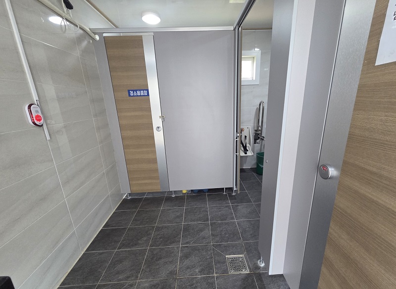 파크 골프장 앞 위쪽에는 화장실도 설치되어 있다. 산책을 하다 보면 가끔 급히 화장실이 필요할 때가 있었는데, 몇 년 전부터 천변 산책로 곳곳에 화장실이 하나씩 만들어지고 있는 것을 볼 수가 있었다. 직접 들어가 보지는 않았었는데, 오늘은 궁금하여 들어가 보았다. 화장실 내부는 에어컨이 가동되어 시원하고 깨끗하게 관리되고 있었다. 더운 날엔 여기서 잠시 쉬어 가도 좋겠다는 생각이 들었다.