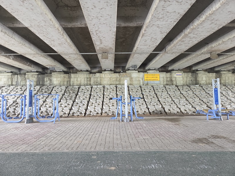 천변은 푸르름으로 가득했다. 시원하게 부는 바람을 두 팔 벌려 온 몸으로 느끼며 산책의 여유를 만끽했다. 며칠 동안 뜨거운 날씨가 이어진 탓인지 산책하는 사람은 많지 않았고, 덕분에 산책로에 있는 운동기구들도 한가로워 보였다.