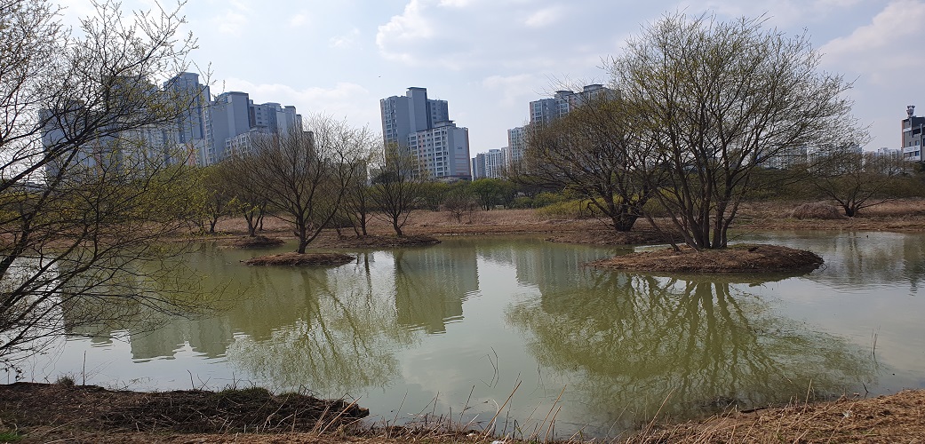 큰 호수와 연결된 작은 웅덩이 같은 물가에는 새들이 한가롭게 머물고 있었고, 몇몇은 뭔가를 잡는지 물 속에 주둥이를 넣기를 반복하는 모습도 볼 수 있었습니다. 작년에 봤던 연꽃 줄기들이 아직은 새싹이 나지 않은 채 마른 상태였지만, 곧 활짝 필 모습을 상상하니 그것만으로도 설레었습니다. 연꽃이 피는 계절이 되면 꼭 다시 와봐야겠다는 생각이 들었습니다.