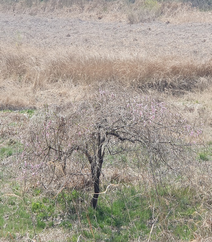 천변을 따라 걷는 길, 곳곳에서 자연의 소박한 아름다움이 느껴졌습니다. 바람에 흔들리는 갈대와 들풀, 향긋한 쑥 냄새, 그 중에서도 유독 눈에 들어온 건, 아직 작년의 그늘에서 완전히 벗어나지 못한 듯 힘겹게 꽃을 피우고 있는 개복숭아나무였습니다. 마치 꿋꿋하게 다시 시작하려는 의지를 담고 있는 듯 보여 마음 한편이 찡해졌어요. 천변 한가운데 동그랗게 꽃을 피운 싸리나무도 참 인상적이었는데, 그 조용한 생명력 덕분에 한참이나 발길을 멈추고 바라보게 되었습니다.