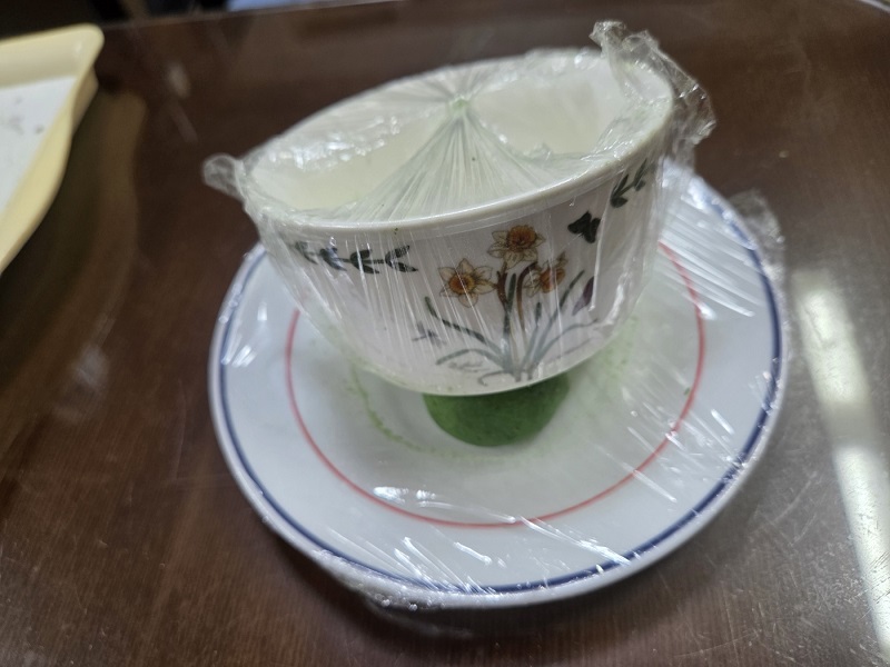 덩어리로 되어 있는 반죽을 먹을 수 있는 크기로 만들어 쪄서 얼려 놓아야 먹고 싶을 때 하나씩 꺼내어 먹기 편하다. 그 작업을 해야 하는데 귀찮아서 내일로 미룰까 하다가 자면서도 생각이 날 것 같아 바로 만들 준비를 했다. 먼저 쟁반, 찜기, 면 보자기, 랩에 싼 접시, 그리고 밑 부분이 약간 산이 있는 밥그릇을 랩으로 싸서 준비했다. 그래야 눌린 반죽이 그릇에 붙지 않고 잘 떨어지기 때문이다.