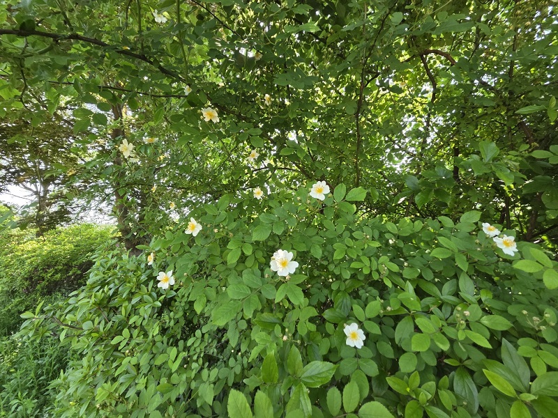 이 공원은 다른 곳에 비해 다소 관리가 덜 된 듯했지만, 오히려 그런 자연스러움이 편안함으로 다가오기도 했습니다. 작은 오솔길과 풒 숲에 있어 앉아 쉬기엔 다소 부담스러운 벤치, 그리고 깨끗하게 잘 관리 되어 있지만, 왠지 사람들의 발길이 잘 닿지 않을 것 같은 운동시설들 이 모든 것들이 어울리지 않을 것 같으면서도 잘 어우러져 있었습니다. 그때 어디선가 나는 진한 익숙한 향기를 따라 걷다 보니 몇 송이 피지 않은 찔레꽃이 그 자리에 있었습니다. 우리 시골에서는 찔럭이라 말했던 기억과 어린 순의 껍질을 벗겨 먹던 추억이 떠올랐습니다.