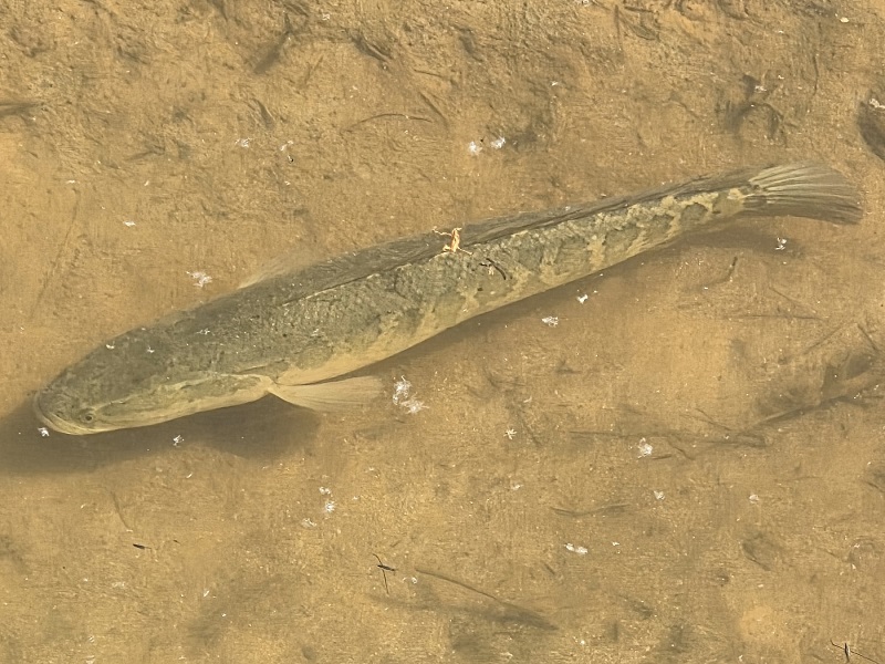 호수를 따라 걷다 보니 얕은 물 풀숲에 작은 물고기들이 숨어 있었고 그 가까운 곳에는 엄마로 보이는 커다란 물고기 한 마리가 유유히 헤엄치고 있는 모습이 눈에 들어왔습닏다. 사진을 찍어 검색해 보니 가물치였습니다. 예로부터 몸보신에 좋다고 알려진 그 물고기, 사람들의 눈에 띄면 위험하지 않을까? 하는 걱정이 되었습니다. 다행히 가물치가 내 맘을 아는 듯이 유유히 깊은 곳으로 사라졌습니다.