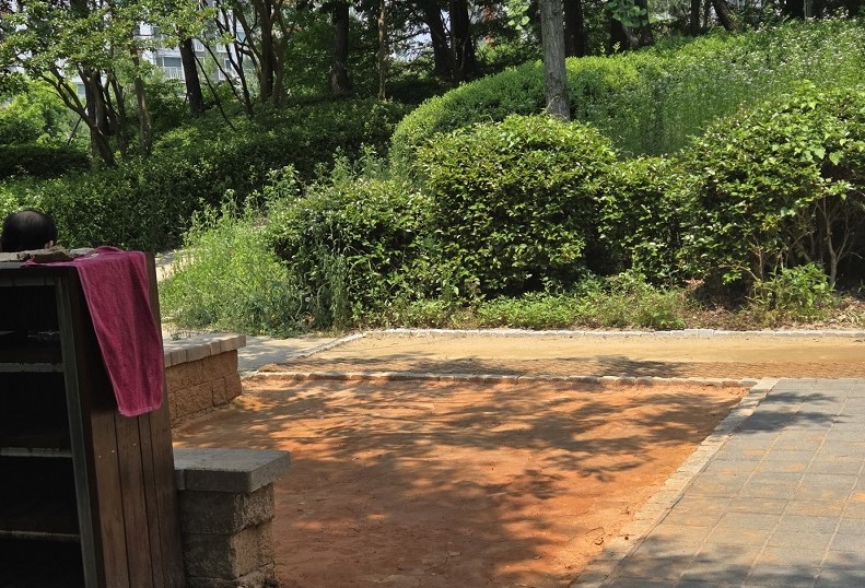한낮은 덥지만 아직은 맨발 걷기에는 다소 차가운 날씨였지만 산책을 즐기는 사람들의 모습을 볼 수가 있었다. 공원 한쪽에는 고등학교가 있어 운동장에서 들려오는 학생들의 소리가 조용한 공원에 활기를 더했으며 커다란 소나무 아래로 이어진 산책로는 햇살이 적당히 가려져 시원하게 걸을 수 있었다.