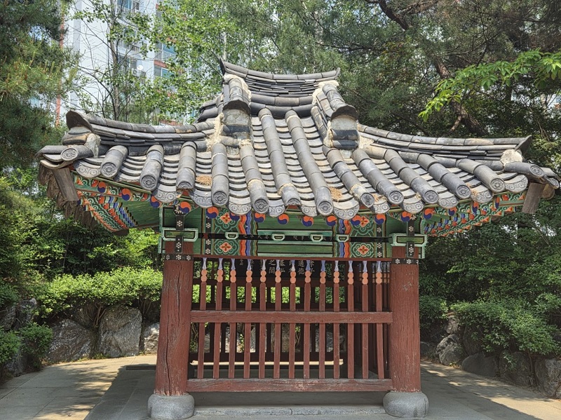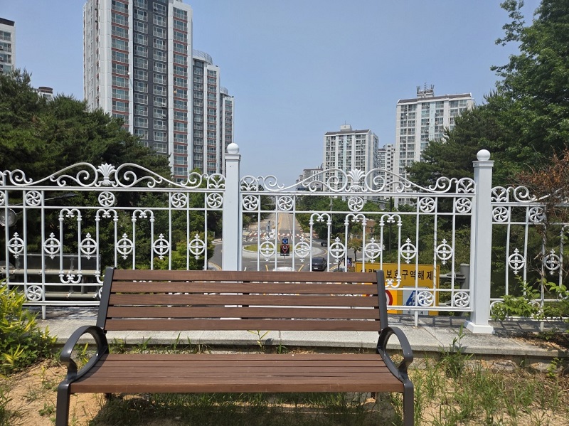 다리를 건너 반대편 공원으로 이동했다. 이곳은 초등학교와 아파트 단지가 바로 옆이어서 산책로는 마치 아파트 주민들의 앞마당처럼 느껴졌다. 실제로 동네 주민으로 보이는 분이 어린아이와 함께 걷는 모습도 눈에 띄었다. 한참을 걷다 보니 옛 건물이 보여 확인해보니 ‘효열각’이라는 이름의 정려문으로` 효성이 지극했던 부부를 기리기 위해 세운 것이라고 한다. 다만 글씨가 많이 희미해져 읽을 수가 없어 아쉬움이 남았다.